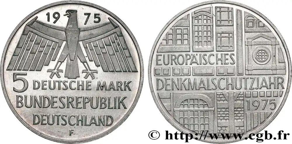 Seulement Aujourd’hui ALLEMAGNE 5 Mark Proof Année européenne du patrimoine 1975 Stuttgart – F fwo_822973 Monde