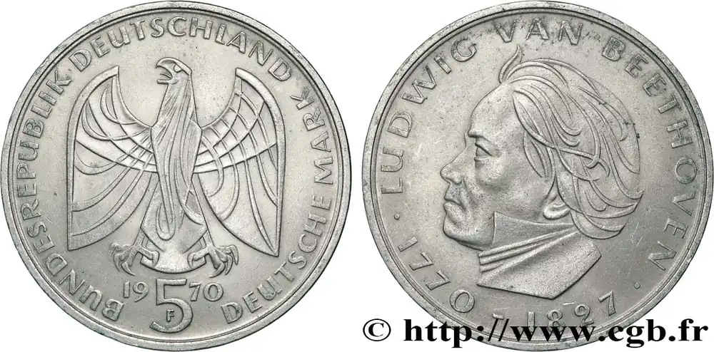 ALLEMAGNE 5 Mark 200e anniversaire de la naissance de Beethoven 1970 Stuttgart fwo_830992 Monde Solde