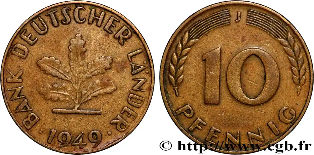 ALLEMAGNE 10 Pfennig “Bank deutscher Länder” 1949 Hambourg – J fwo_889564 Monde Offre Exclusive