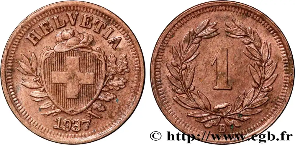 SUISSE 1 Centime (Rappen) Croix Suisse 1937 Berne fwo_836487 Monde Prix Promo