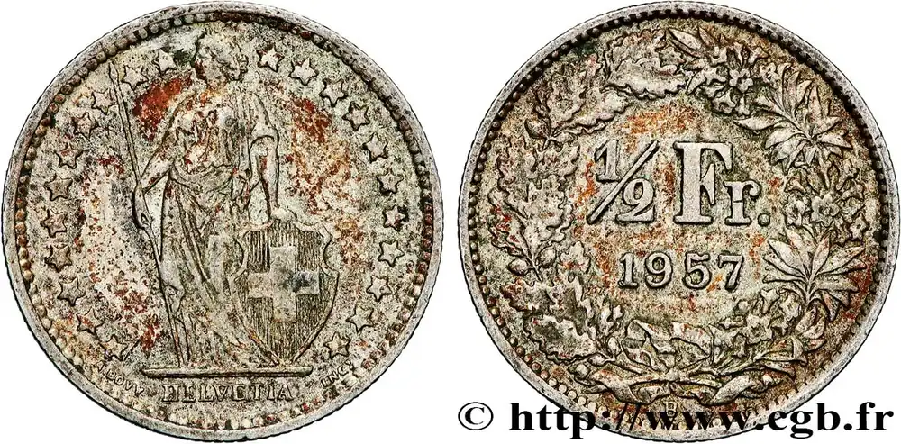 SUISSE 1/2 Franc Helvetia 1957 Berne – B fwo_837569 Monde Vente Directe