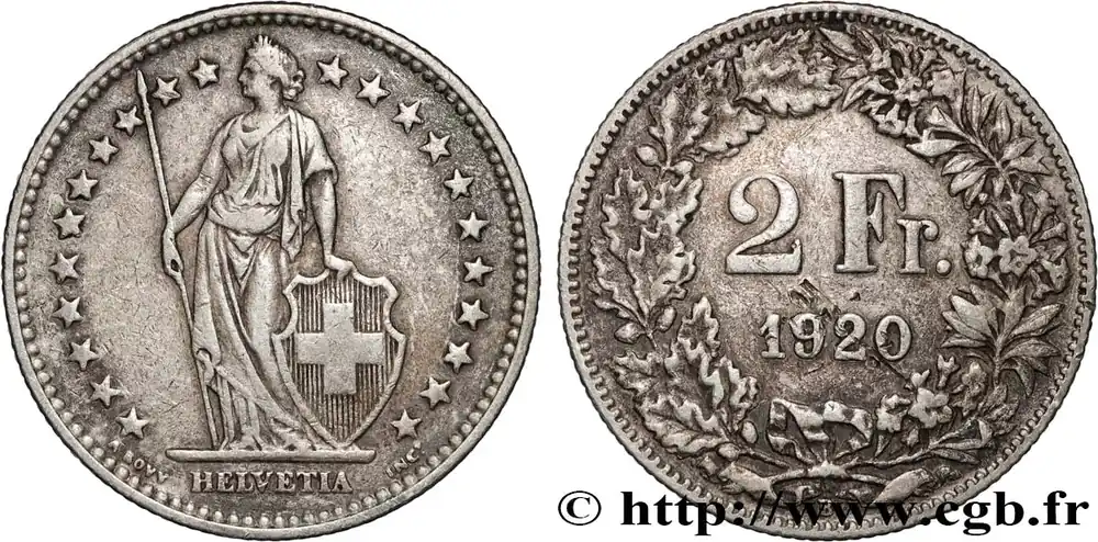 Seulement Aujourd’hui SUISSE 2 Francs Helvetia 1920 Berne fwo_885558 Monde