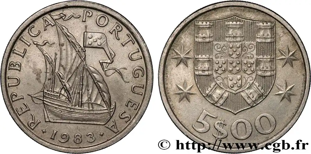 Solde PORTUGAL 5 Escudos Voilier / emblème 1983 fwo_893503 Monde