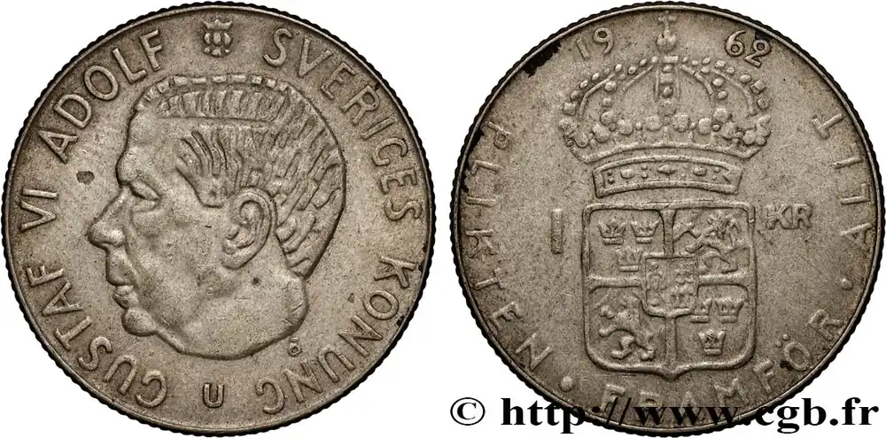 SUÈDE 1 Krona Gustave VI 1962 fwo_893524 Monde Premium