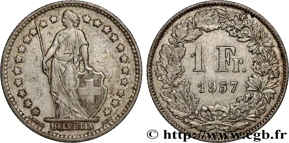 SUISSE 1 Franc Helvetia 1957 Berne – B fwo_893577 Monde Vente Directe