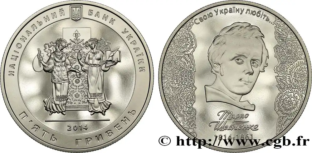 UKRAINE 5 Hryvnias 100e anniversaire de la naissance de Taras Hryhorovytch Chevtchenko 2014 fwo_842897 Monde Petit Prix