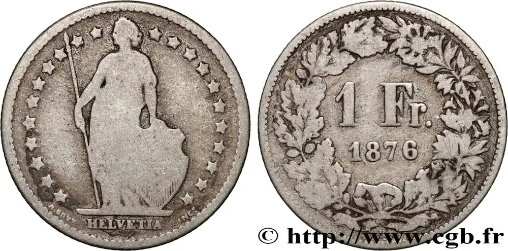 Vente Flash SUISSE 1 Franc Helvetia 1876 Berne fwo_875514 Monde