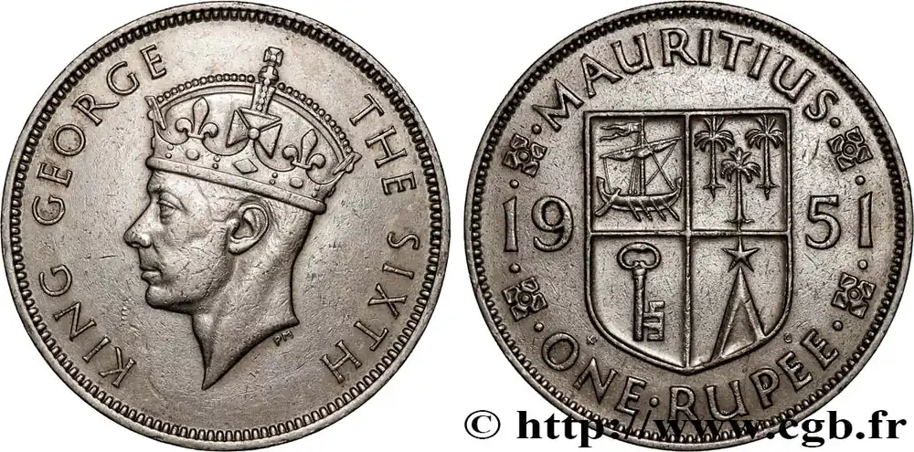Vente Flash ÎLE MAURICE 1 Rupee (Roupie) roi Georges VI 1951 fwo_893547 Monde