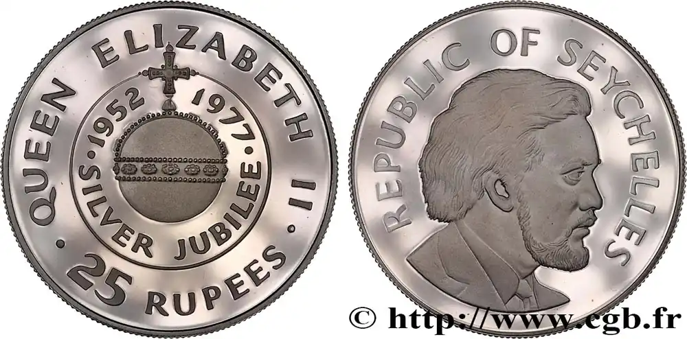 Vente Directe SEYCHELLES 25 Rupees Proof 25e anniversaire de règne de la reine Elizabeth II 1977 fwo_893593 Monde