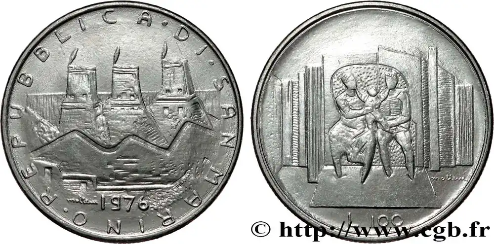 Artisanat SAINT-MARIN 100 Lire 3 tours / sécurité sociale : famille réunie 1976 Rome fwo_871075 Monde