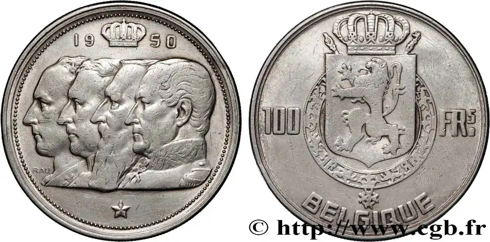 BELGIQUE 100 Francs portraits des quatre rois de Belgique, légende française 1950 fwo_879912 Monde Livraison Mondiale
