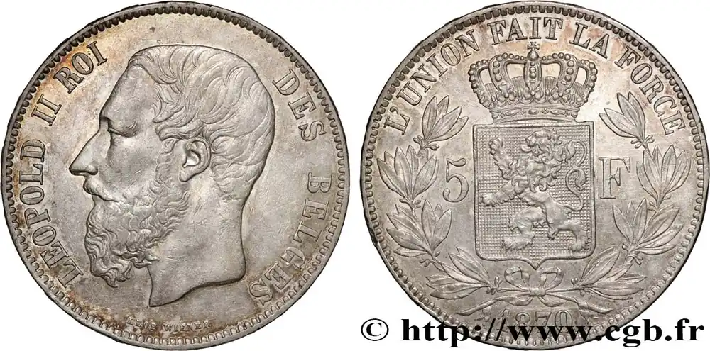 BELGIQUE 5 Francs Léopold II 1870 fwo_883016 Monde Top Vente