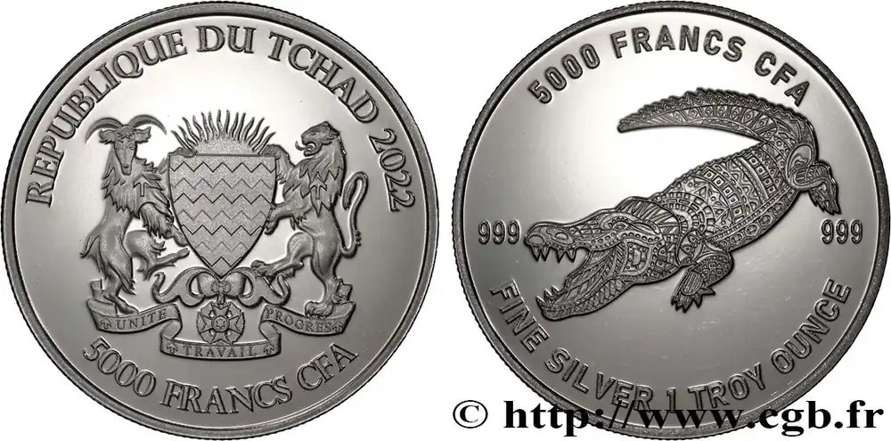 Authentique ARGENT D’INVESTISSEMENT 1 Oz – 5000 francs Crocodile 2022 fwo_884103 Monde