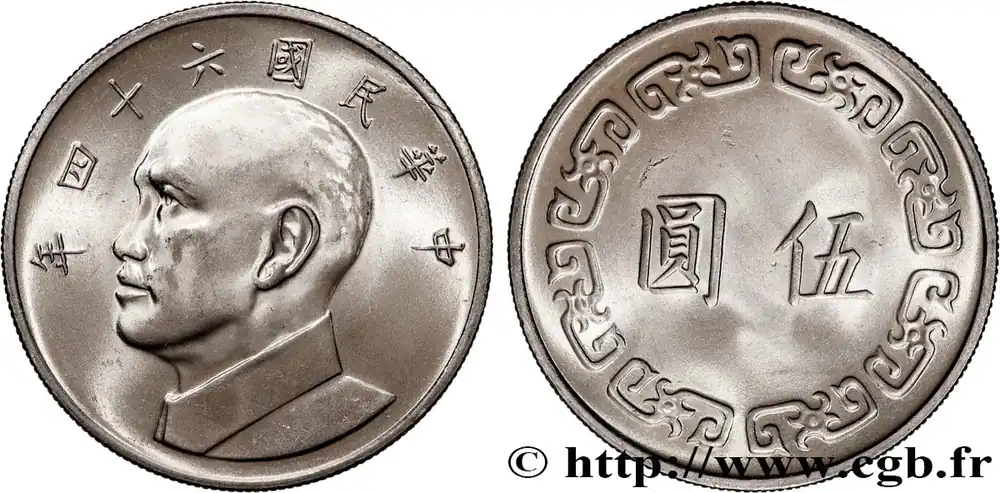 Authentique RÉPUBLIQUE DE CHINE (TAIWAN) 5 Yuan Tchang Kaï-chek an 64 1975 fwo_891166 Monde
