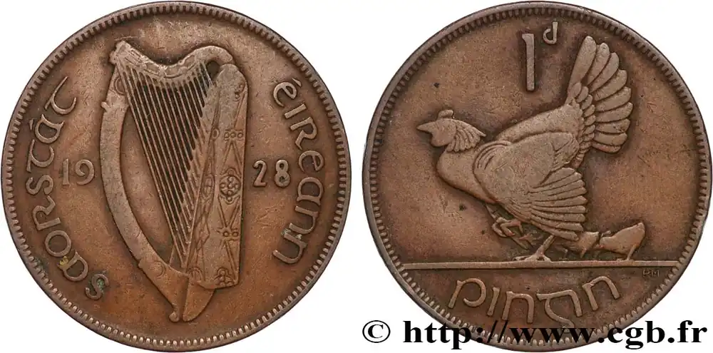 Authentique IRLANDE 1 Pingin (Penny) 1928 Royal Mint fwo_893541 Monde
