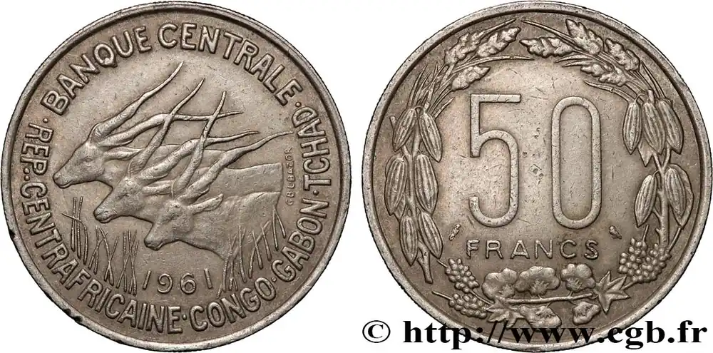 ÉTATS DE L’AFRIQUE ÉQUATORIALE 50 Francs antilopes 1961 fwo_893553 Monde Acheter En Ligne