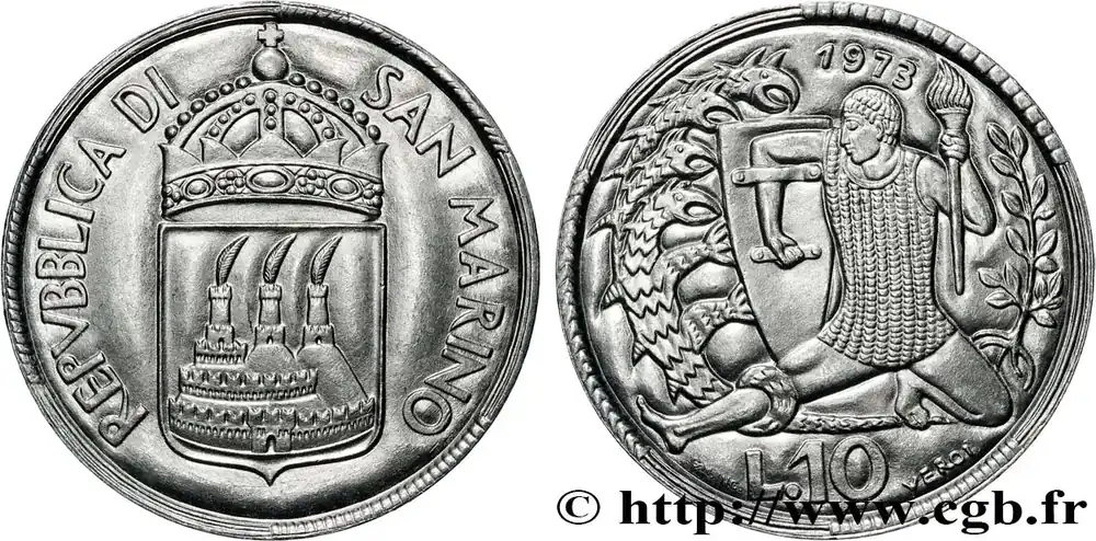 Produit De Marque SAINT-MARIN 10 Lire 3 tours / allégorie de la défense de la nature par l’homme 1973 fwo_861741 Monde