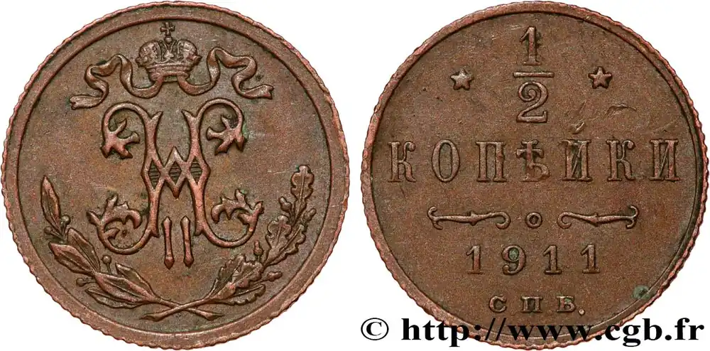 RUSSIE 1/2 Kopeck monogramme Nicolas II 1911 Saint-Petersbourg fwo_811406 Monde Livraison Express