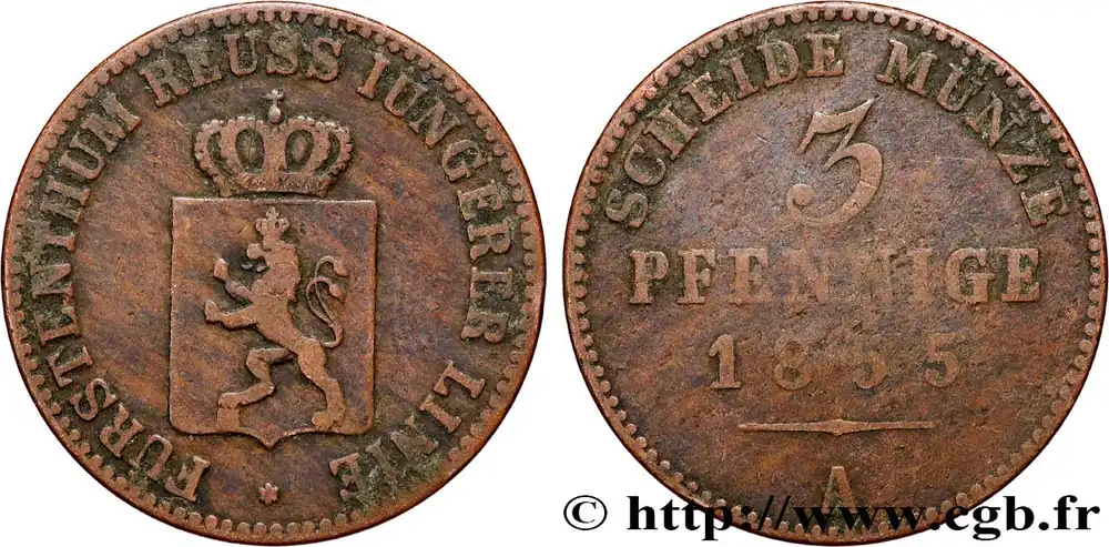 ALLEMAGNE – REUSS 3 Pfennige Principauté de Reuss 1855 Berlin fwo_898442 Monde Top Vente