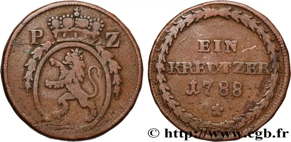 ALLEMAGNE – PALATINAT-DEUX-PONTS 1 Kreuzer Charles II Auguste duché de Palatinat-Deux-Ponts 1788 fwo_898692 Monde Commander Maintenant