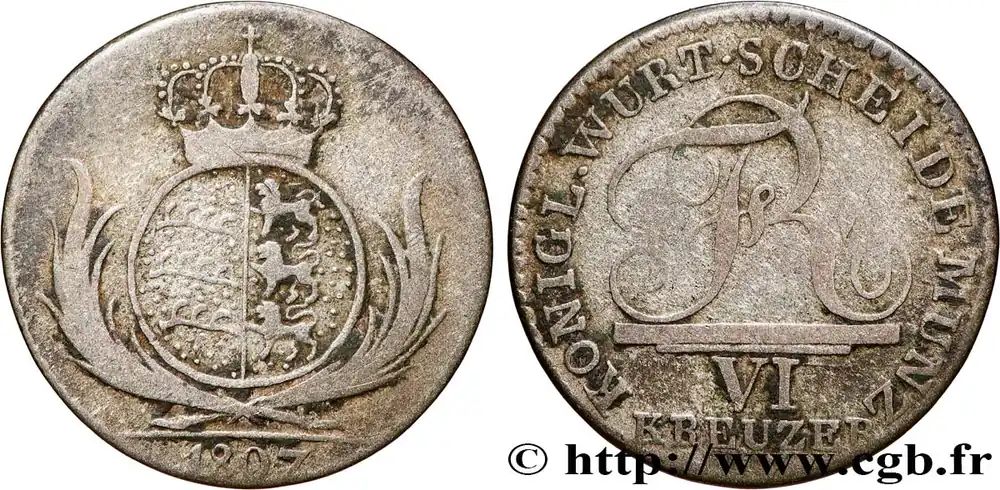 ALLEMAGNE – WURTEMBERG 6 Kreuzer Royaume de Würtemberg monogramme de Frédéric Ier 1807 fwo_898700 Monde Acheter En Ligne