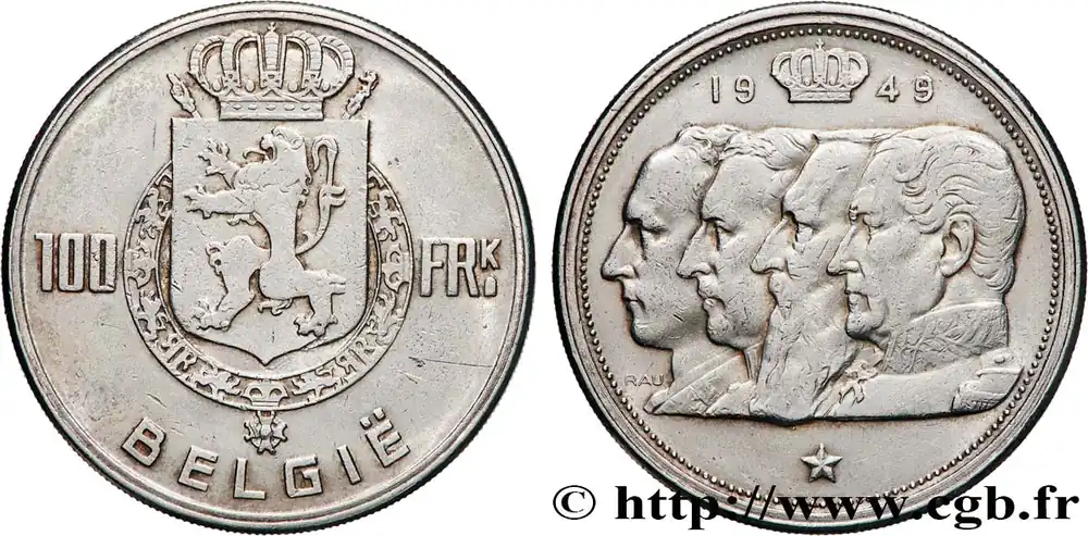 BELGIQUE 100 Franken (Francs) bustes des quatre rois de Belgique, légende flamande 1949 fwo_879916 Monde Acheter En Ligne
