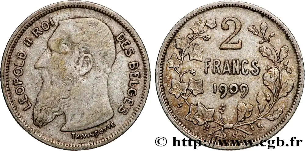 BELGIQUE – ROYAUME DE BELGIQUE – LÉOPOLD II 2 Francs légende française 1909 fwo_898648 Monde Garantie Incluse