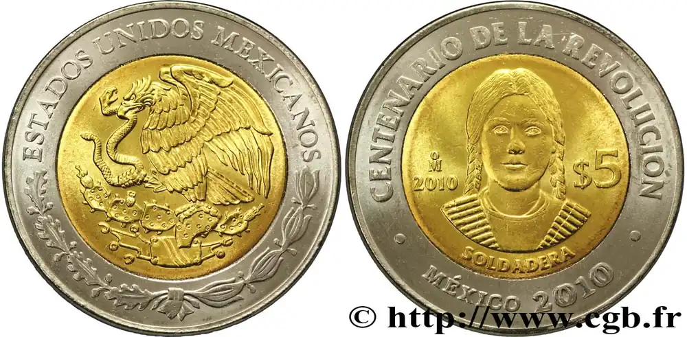 Commander Maintenant MEXIQUE 5 Pesos Centenaire de la Révolution : aigle / la Soldadera 2010 Mexico fwo_839628 Monde