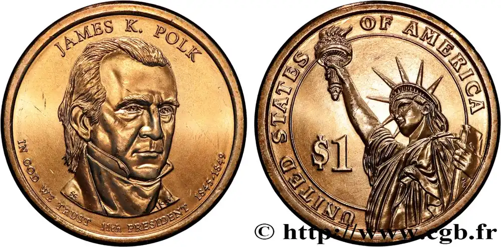 ÉTATS-UNIS D’AMÉRIQUE 1 Dollar Présidentiel James K. Polk / statue de la liberté type tranche B 2009 Denver fwo_824244 Monde Bon Plan