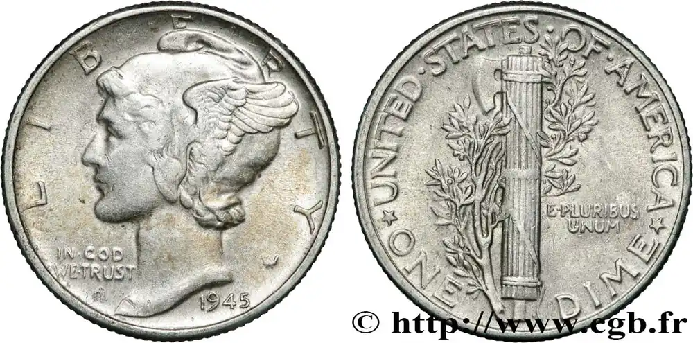 ÉTATS-UNIS D’AMÉRIQUE 1 Dime Mercury 1945 Philadelphie fwo_861166 Monde Édition Limitée
