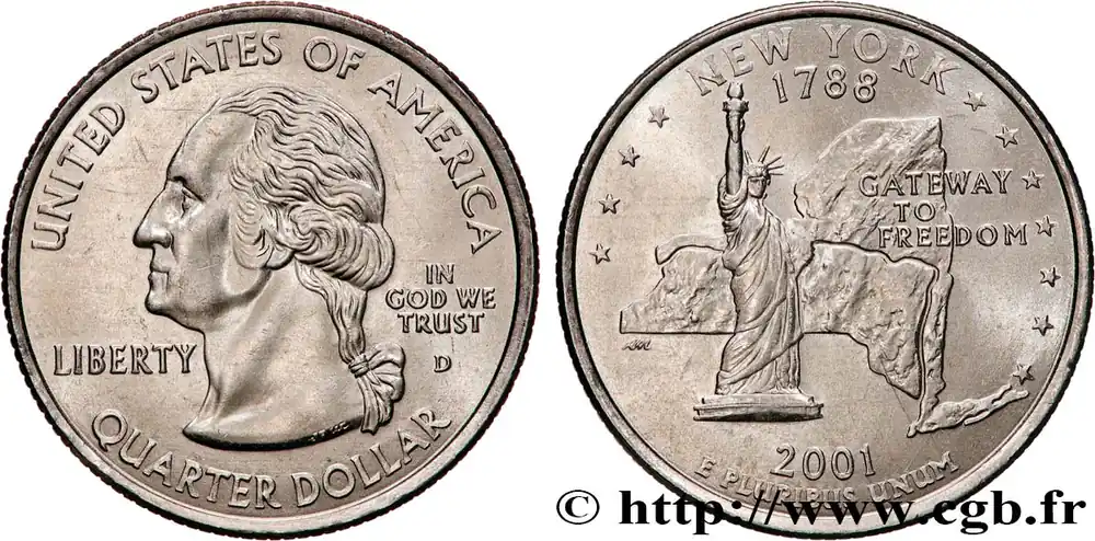 ÉTATS-UNIS D’AMÉRIQUE 1/4 Dollar New-York : « Gateway to Freedom » 2001 Denver fwo_897182 Monde Livraison Express