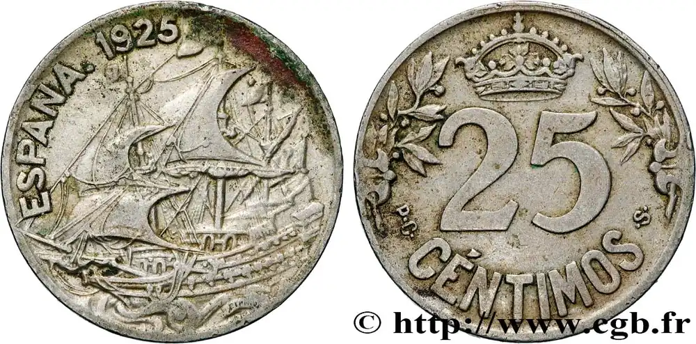 Remise ESPAGNE 25 Centimos navire 1925 fwo_896284 Monde