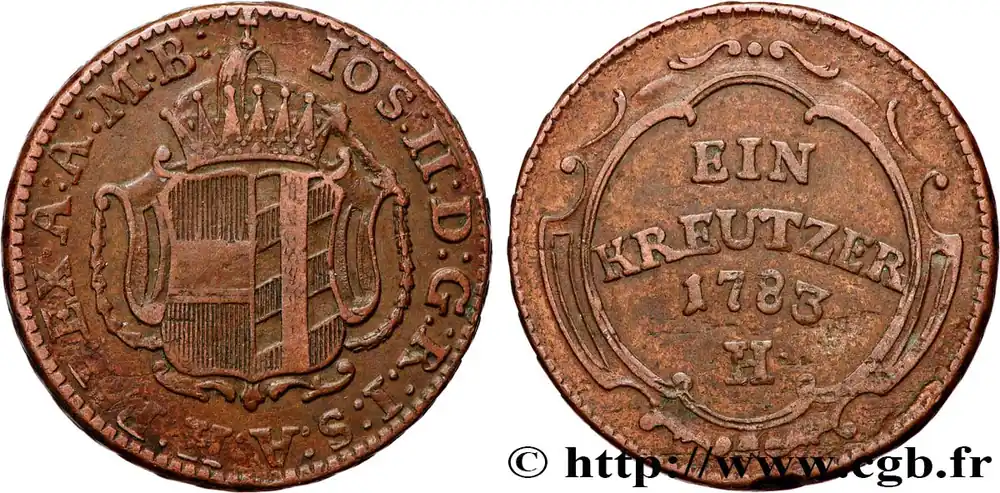 Remise ALLEMAGNE – AUTRICHE ANTÉRIEURE 1 Kreutzer Joseph II d’Autriche 1783 Gunzburg fwo_900841 Monde