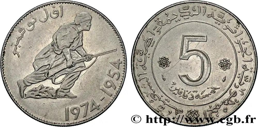 ALGÉRIE 5 Dinars 20e anniversaire de la Révolution 1974 Paris fwo_896586 Monde Meilleur Choix