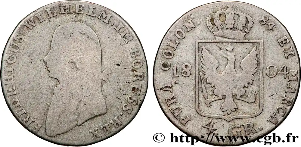 ALLEMAGNE – PRUSSE 1/6 Thaler (4 Groschen) Frédéric-Guillaume III 1804 Berlin fwo_900164 Monde Meilleure Qualité