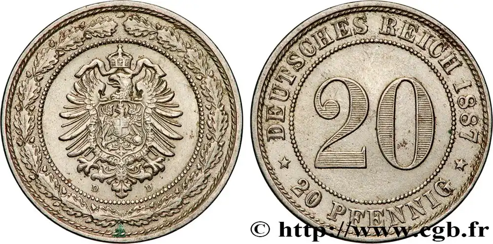 ALLEMAGNE 20 Pfennig Empire 1887 Berlin fwo_900171 Monde Prix Promo