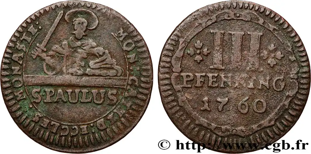 ALLEMAGNE – MUNSTER 3 Pfenning Chapitre de la Cathédrale de Munster 1760 fwo_900986 Monde Livraison Gratuite