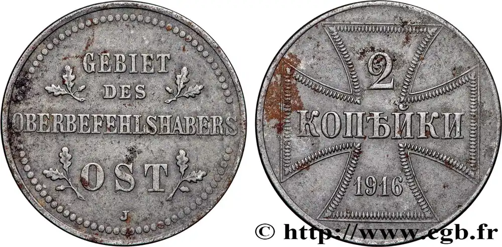ALLEMAGNE 2 Kopecks Monnaie d’occupation du commandement supérieur du front Est 1916 Hambourg – J fwo_901305 Monde Livraison Express