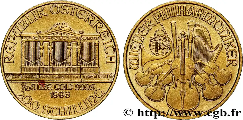 Usine Directe OR, PALLADIUM ET PLATINE INVESTISSEMENT 1/10 Oz – 200 Schilling LE PHILARMONIQUE DE VIENNE 1996 Vienne fwo_869839 Monde
