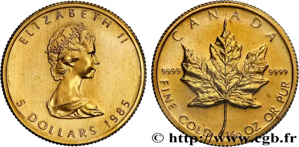 OR, PALLADIUM ET PLATINE INVESTISSEMENT 1/10 Oz – 5 Dollars or « Maple leaf » 1985 fwo_869894 Monde Achat Immédiat