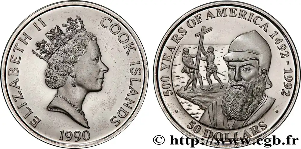Livraison Gratuite ÎLES COOK 50 Dollar Proof 500 ans de la découverte de l’Amérique 1990 fwo_756472 Monde