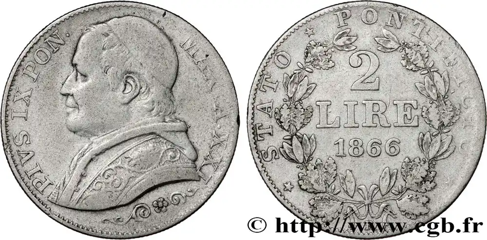Must-Have VATICAN ET ÉTATS PONTIFICAUX 2 Lire Pie IX an XXI 1866 Rome fwo_812988 Monde