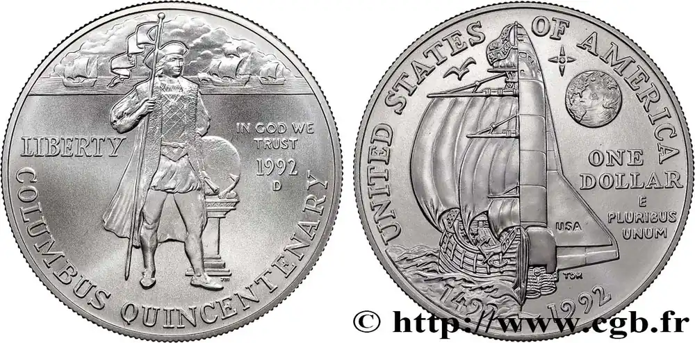 Usine Directe ÉTATS-UNIS D’AMÉRIQUE 1 Dollar Proof 500e anniversaire de la découverte de l’Amérique par Christophe Colomb 1992 Denver fwo_796833 Monde