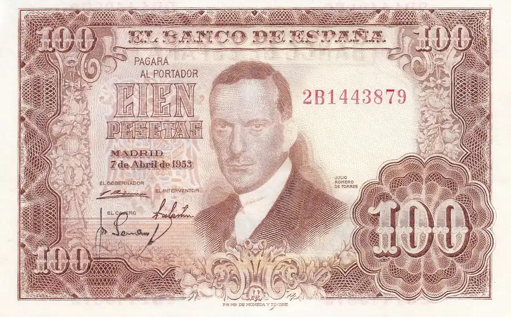 Billet Espagne 100 Pesetas – J.R. de Torres -1953 – Série 2B – P.145 Commande En Gros