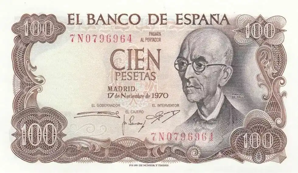 Billet Espagne 100 Pesetas 1970 – Manuel de Falla Seulement Aujourd’hui
