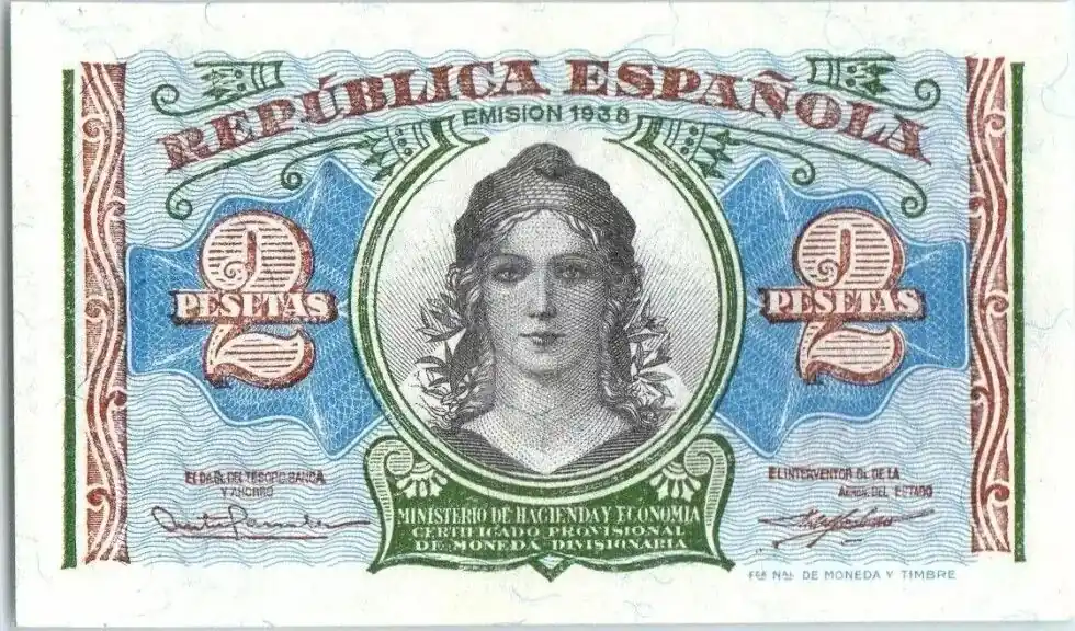 Billet Espagne 2 PesetasRépublique – Pont – 1938 Dernier Modèle