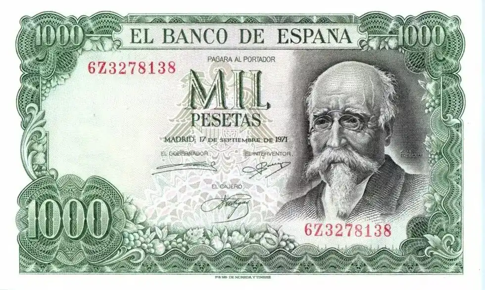 Billet Espagne 1000 Pesetas 1971 – José Echegaray – Madrid Offre Exclusive