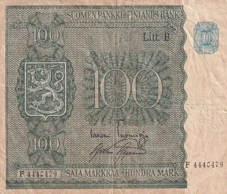 Billet Finlande 100 Markkaa Groupe de personnes – 1932 / 1945 Certifié