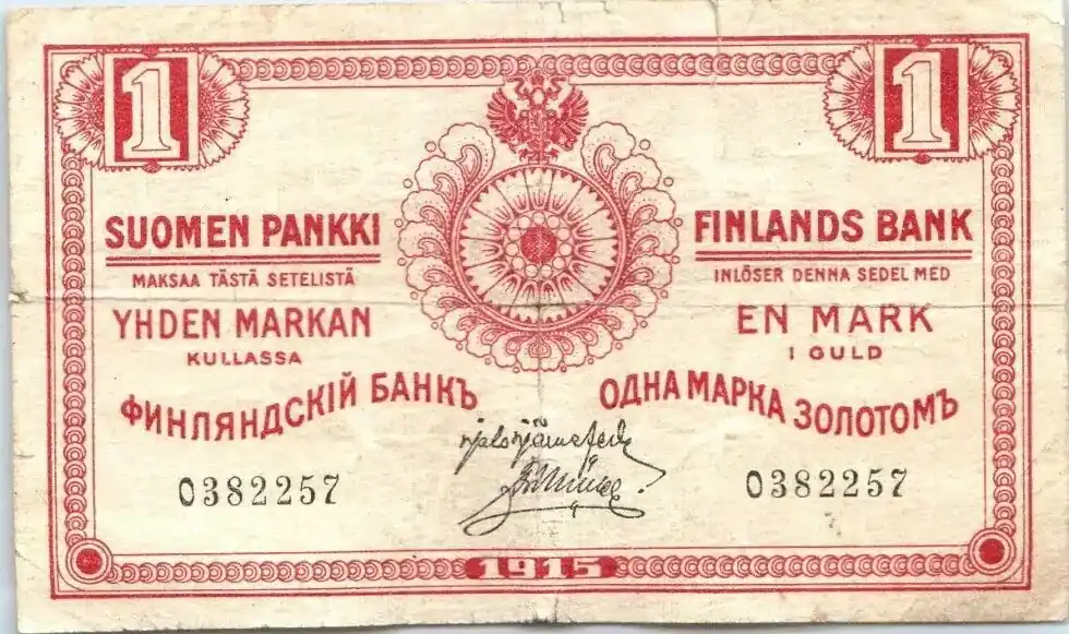 Remise Billet Finlande 1 Markkaa Rouge – 1915 (2em)