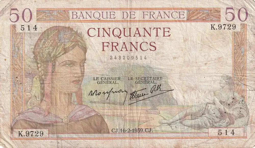 Tendance Billet France 50 Francs Cérès – 16-02-1939 – Série K.9729